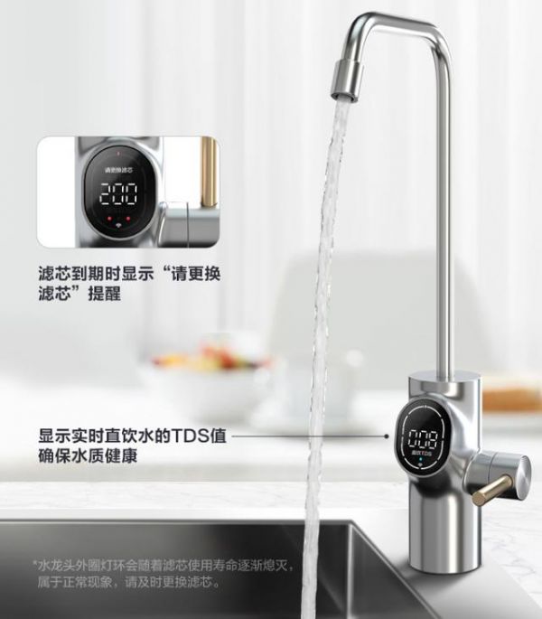 在用户体验方面,白泽600G净水器同样出彩,独立安装智能水龙头,不用打开橱柜即可掌握净水状态,随时查看水质和滤芯使用情况,水龙头显示实时直饮水的TDS值,实现"干净看的见,杯杯都鲜活";此外还支持美居APP联动,手机随时查看水质情况、滤芯寿命,纤薄机身设计,支持厨下隐藏安装,小巧不占地,给消费者带来更好的饮水体验。