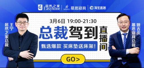 3月6日晚7点,居然之家总裁王宁先生、慕思寝具总裁姚吉庆先生将亲自做客直播间,参与消费者互动,为消费者带来多款精选爆款臻品。消费者可登录居然之家官方旗舰店,进入直播间后,即可便捷地秒杀到特惠、海量款式的慕思好眠产品,其中也包括慕思旗下的歌蒂娅、凯奇、3D、儿童、家纺、助眠、CALIA等子品牌全线品类产品,也将全面上线,为消费者带来助眠好福利。