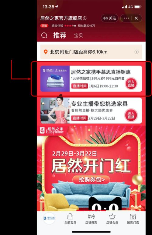 打开手机淘宝/天猫搜索“居然之家官方旗舰店”,点击进入直播间