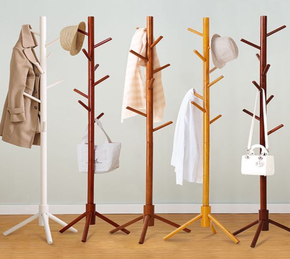 这是一款简约型的实木衣帽架,颜色有多种,但红色是个不错的选择。我们家里的衣帽架不需要太显眼,而这种深红色既显得低调,又有贵重感,高颜值更是一眼就能看出来的,把衣服包包挂上,一天的疲惫都变轻了。