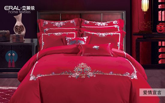随着时代的发展,传统文化元素已经活跃于当代生活的诸多领域,“国潮”的盛行,不但满足了大家的民族认同感,也体现了消费者对于仪式感的需求。在2020春夏喜庆婚房系列的设计中,艾莱依家纺撷取高明度的纯粹色泽故宫红,传承华夏正统婚俗文化,将吉祥喜庆的中式元素与现代审美结合的恰如其分,表达了中式婚俗的精髓与美好愿景。