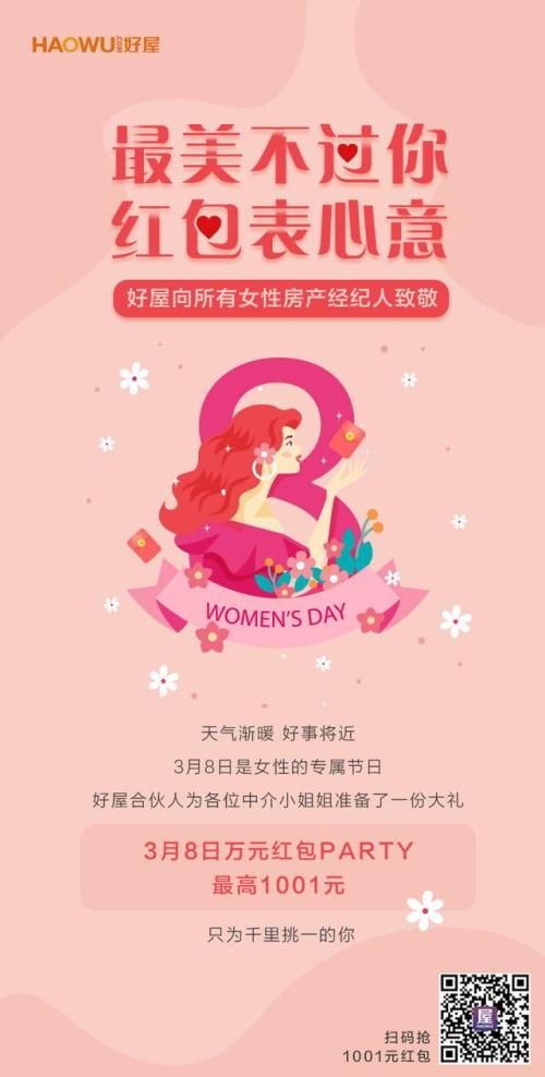 其实不止是医疗领域,女房产经纪人们也不畏惧艰险的奋斗在为客户服务的一线,在这个专属于女性的节日里,好屋致敬这些女性经纪人们,为她们准备了大礼。3月8日首次登陆好屋合伙人APP即可获得随机现金红包,最高可达1001元!