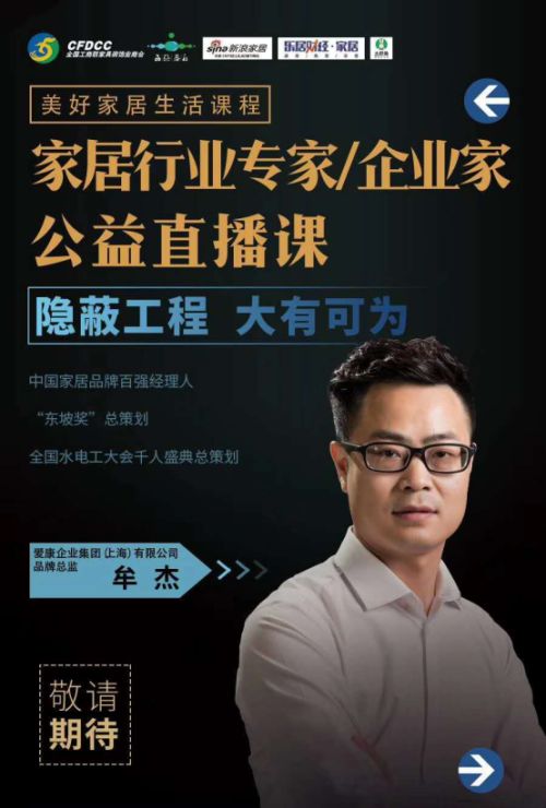 2020年3月6日,惊蛰,爱康企业集团品牌总监 摩羯先生受全国工商联家具装饰企业商会与西海基石教育联合推出的“美好家居生活企业公益直播课”的邀请,在新浪家居直播平台与全国装企分享他对隐蔽工程的见解。