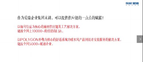 作为辅材品牌,我们在发生变化!爱康从最开始单纯售卖产品,到产品+服务的形式,到我们现在升级为产品+服务+整体的解决方案一站式体系。