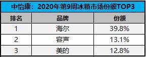 复工第3周,中怡康于3月5日发布了最新冰箱市场数据。其中,海尔份额39.8%居第一,容声13.1%、美的12.8%分居二、三名。