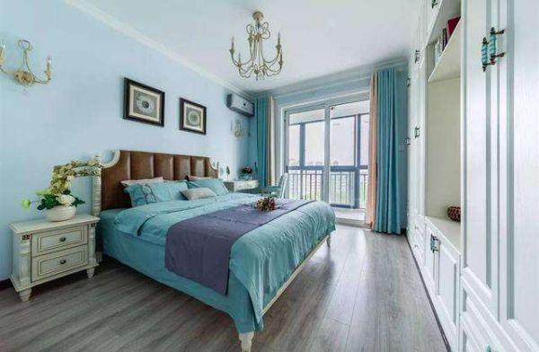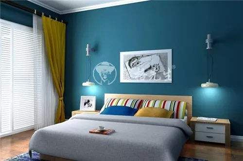 卧室墙面用蓝色搭配,这样更能构建良好的休息气氛,让房间显得更加清新自然,冷色调具有缩小的视觉效果,使房间显得更加宽敞。