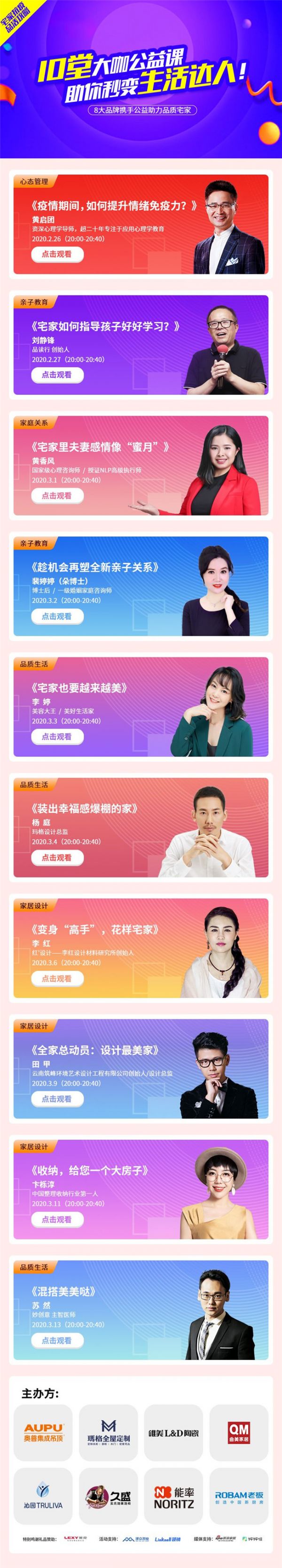 10位大咖公益课 助你秒变生活达人!