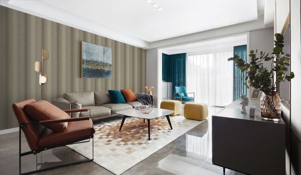 深浅渐变的色彩叠加明暗变换的纹理,让墙面有了传统墙布没有的立体感。色彩与纹理的相互糅合,点缀些许金属元素,为空间带来一种别具格调的艺术之美。