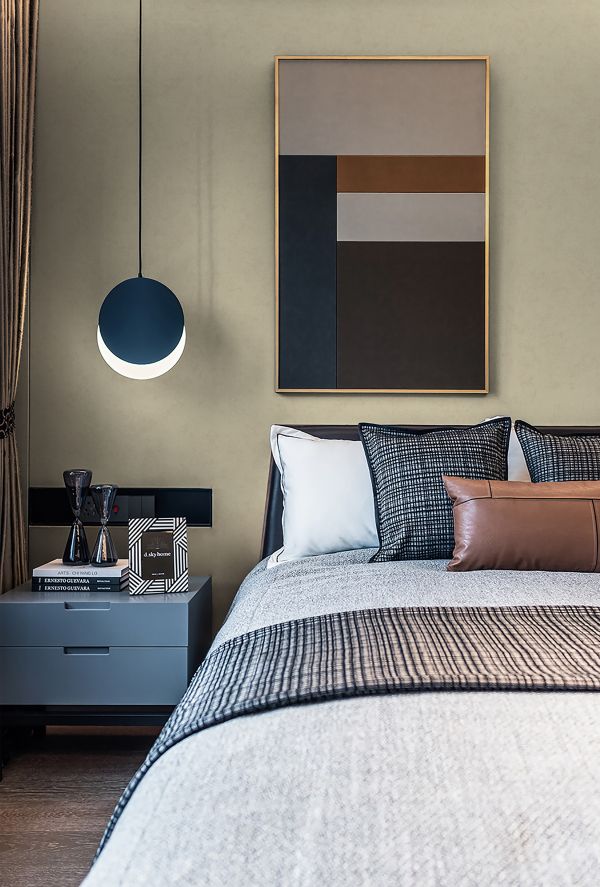 简约的设计语言,掩盖不了轻奢主义的精致时尚。在细腻的缎面上辅以变幻万千的大理石暗纹,搭配亚麻质地的床品,天生丽质的自然纹理让空间更显灵动。