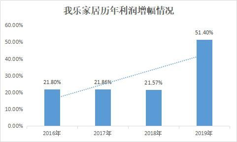 查阅历年年报发现,2019年我乐家居归属于上市公司股东的净利润为1.54亿元,比上年同比增长51.40%,创下了公司自有公开披露数据以来的最大单年增幅,凸显了我乐家居过去五年持续提升的盈利能力;同时,净利润增长率此前3年均平稳保持在22%以内,而2019年逆市翻番一倍有余,成为我乐家居史上又一个盈利“丰年”的全新转折年。