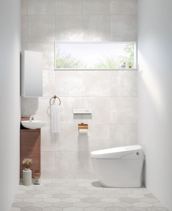 不仅如此,设计还赋予产品形之美,连卫浴间的颜值都可兼顾。赛天思G在设计过程中使用了伊奈三大设计元素中的方圆形和张力形,从正上方看圆润不失气度,盖板表面与陶瓷体边缘形成微微弧度,充盈、充满了张力。整个坐便器的机械部分和陶瓷体完美结合,浑然天成。而赛天思S则通过简单的形状搭配单面方圆形,尽显张弛有度之感,盖板下滑的坡度增添整体松弛感,正如日式建筑,明明局限在规则之内,又好像要和自然融为一体。