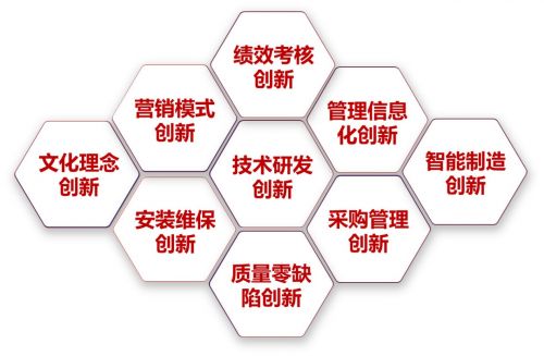 管理优化上, 持续推进“九大创新”(文化理念创新、营销模式创新、技术研发创新、管理信息化创新、绩效考核创新、智能制造创新、安装维保创新、采购管理创新、质量零缺陷创新)。