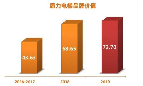 2016年6月,国务院提出设立“中国品牌日”的倡议,同年12月,公司首次参评由国家主导的品牌价值评价活动,即荣登“中国品牌价值评价榜”,以43.63亿元品牌价值高居行业榜首,并在2018、2019连续两届以68.65亿元品牌价值、72.70亿元品牌价值,始终稳居中国电梯业品牌价值第1位。