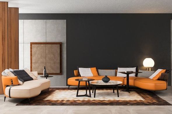 这款有着极简设计的沙发,弧形的独特设计,加上橙色这种暖色调,,每一个细节都会让人难以忘怀,让你过上理想的生活。进口意大利纳帕头层真皮,摸上去细嫩亲肤,手感光滑,有着容易打理、耐用的特性,柔软的座包,饱满轻盈,让你坐上去倍感舒适。