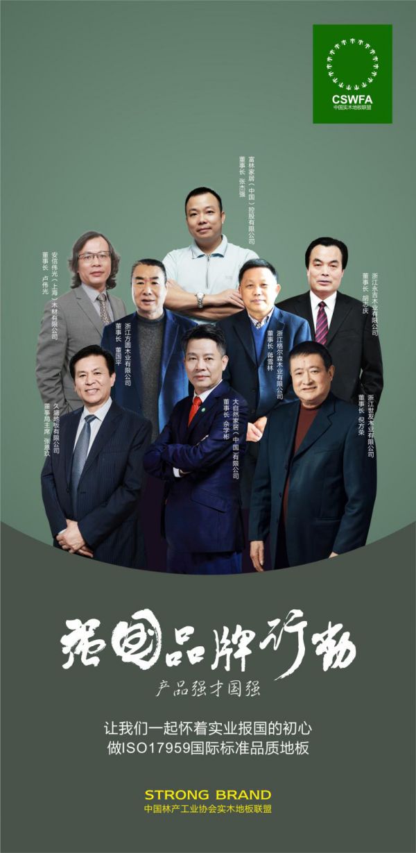 从联盟成立至今,中国实木地板联盟始终以企业需求为先,以行业发展为己任,为联盟企业,为消费者,为地板行业贡献力量,正如本次的“强国品牌”行动一样,中国实木地板联盟希望通过系列活动、宣传,推动行业质量及服务水平的提升,为地板产品赢得更多的消费者。产品强才国强,愿众多的地板企业家都怀着实业报国的初心,做好地板,做国际标准品质地板,让消费者可以选购到更好品质的地板,让联盟企业的地板使你的家更美!