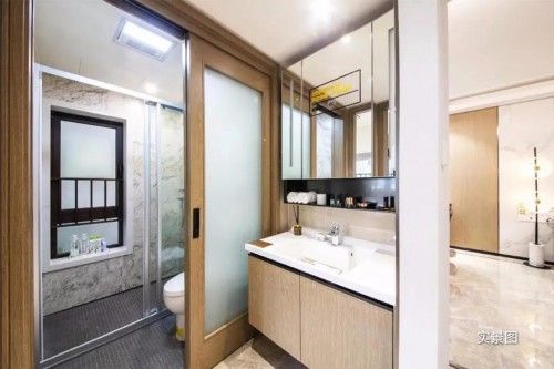 小小的洗手间,干湿两分区的设计不用抢洗漱。一体式的洗手盆,避免了接缝胶的发霉和断裂。浴室交楼时已经安装好浴霸,冬天洗澡也不用怕冷了。