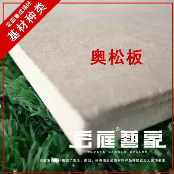 奥松板是一种密度板,用辐射松原木制成,奥松板具有很好的均衡结构,具有平滑的边缘和优良的机械特性,被广泛用于装饰,家具,建筑,包装等行业,硬度大、适合做衣柜、书柜不会变形、承重好、防火防潮性能更好、材料也非常环保,价格也相对较贵,奥松板具有极好的同质结构和独特的强度及稳定性,这使得奥松板成为一种高品质板作为墙咔基材使用,对于追求高品质生活的用户选择宏庭集成墙咔时可考虑奥松板基材。