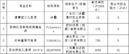 经过测试,在物理性能表现方面各主流品牌产品表现尚佳,但耐洗刷性仍有4件样品未达到儿童涂料标准要求,耐沾污综合能力有3件样品表现较差。