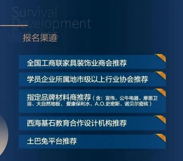 首期“中国家装企业高品质生存发展成效班”今日开始接受全国推荐报名,渠道推荐后,经审核方可入学。