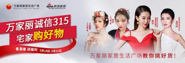 3月14日-3月15日,万家丽家居生活广场联合新浪家居首次双线开展品牌活动——「万家丽诚信315,宅家购好物」,直播期间网红主播陪观众云逛万家丽,爆款家居好物限时抄底折扣,2天25家品牌4场直播全面爆破,特惠不断惊喜连连。众多优质好货,掀起一场席卷全区域的线上秒杀活动。