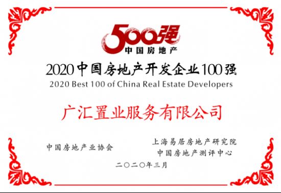 广汇置业进入2020中国房地产企业“百强军团”