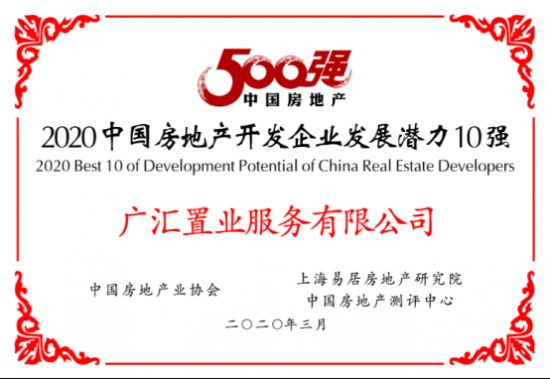 3月18日,2020中国房地产500强测评成果发布会暨500强高峰论坛隆重举行。广汇置业服务有限公司凭借出色的业绩表现和雄厚的综合实力首进中国房地产开发企业100强,斩获三项大奖,荣列“2020中国房地产开发企业500强第99位”,连续三年提升40位,“2020中国房地产开发企业发展潜力10强第7位”,广汇置业“汇荣城”项目获得“2020中国房地产开发企业典型项目”,彰显出行业对公司发展成就的高度认可。