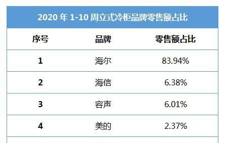 特殊时期,居家囤货是头等大事。但面对市场上品牌众多、功能五花八门的储鲜设备,消费者更买谁的账?3月初,中怡康发布2020年冷柜市场前十周零售额数据:海尔、美的、美菱、容声、澳柯玛分别以44.33%、19.97%、9.86%、9.25%、6.58%的占比位居前五。