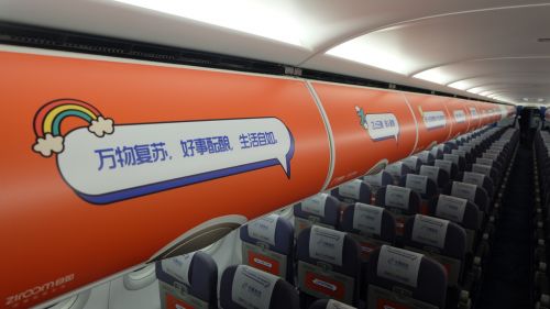 这是由上海自如和华夏航空合作打造的“飞往春天的航班”公益项目,和普通的航班不同,这趟包机的行李架、小桌板、头枕巾上都写满了许多关于春天的心愿和祝福。