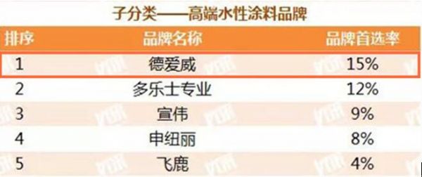 德爱威还以15%的首选率获得高端水性涂料品牌第一名,并凭借强大的色彩设计和服务能力,获得“500强优选色彩综合解决方案服务商”荣誉。