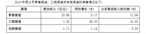 2019年度,惠达卫浴的零售渠道、工程渠道和电商渠道的营业收入分别为23.06亿元、7.33亿元、1.71亿元。其中,工程渠道增速明显,同比增长36.23%,目前与保利、万科、龙湖、远洋、首创、宝能等地产商签署了战略合作协议。