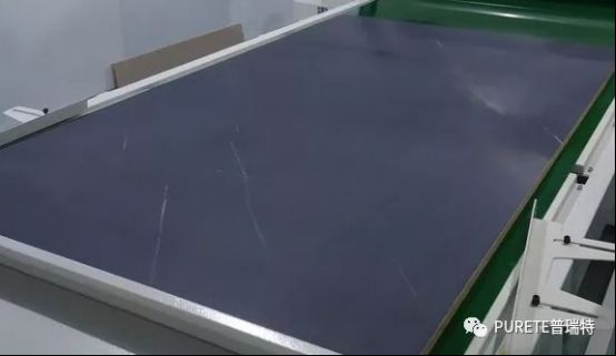 膜压线是通过膜,压到做好UV油漆的大板上,效果由膜来决定。不受现场环境的影响,有没有无尘房都影响不大。