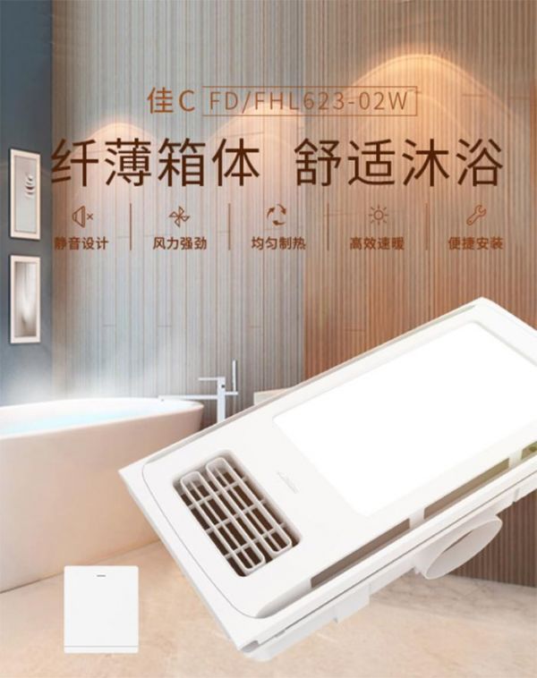 飞雕电器佳-C 集成吊顶,通风换气、舒适照明功能二合一。沐浴时抽离水雾,带来清新空气;宽幅大照明灯,明亮不刺眼。不仅如此,飞雕佳-C 集成吊顶还致力于打造浴室升级舒适体验,暖风机不仅风力强劲,能够均匀制热,还经过静音设计,让沐浴时光静谧舒适。