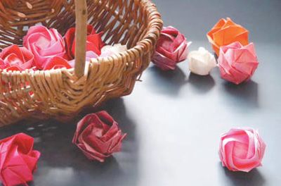 材料准备:一张15厘米×15厘米大小的彩色纸张,以红色、粉色为宜,效果更逼真。