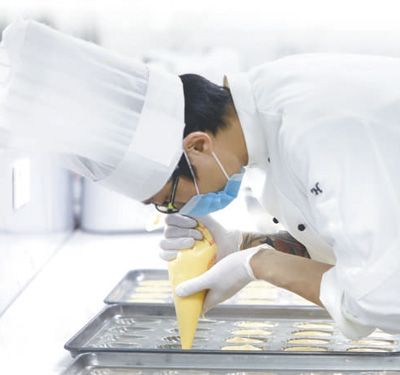 王惠琴负责采买,她认为选择食材很重要。“首先要从正规渠道购买新鲜食材,黄油、奶油、巧克力等尽量选纯天然产品。”王惠琴说,若用植物奶油制作,价格虽便宜,但含有大量反式脂肪酸,不易被人体吸收,大量食用会导致肥胖;天然乳脂奶油则是从新鲜牛奶中提取,不含色素,口感更甜润地道,也更加健康。