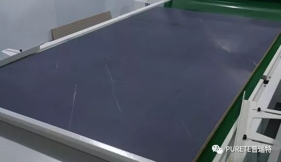 膜压线是通过膜,压到做好UV油漆的大板上,效果由膜来决定。不受现场环境的影响,有没有无尘房都影响不大。