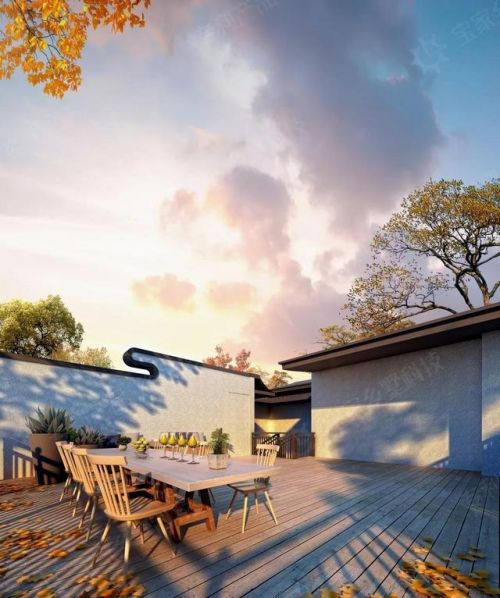 从别墅室内客餐厅的公共楼梯通向二楼,也可以来到一个天台酒廊,很适合弄烧烤party。