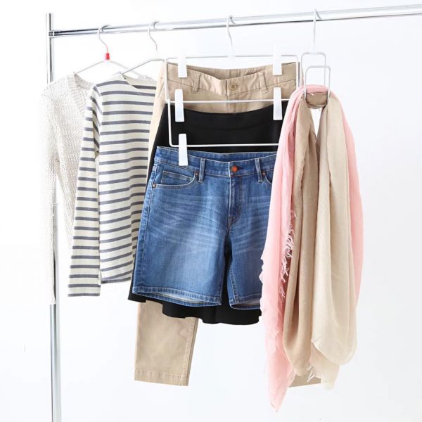 像围巾、裤子每一件占用一个衣架很占空间,利用多层收纳衣架来收纳,多条裤子就可以叠挂在一个衣架上,错落有序,节省空间,间接给衣柜扩容。