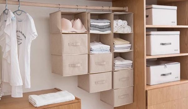 解决衣柜分区问题,最好的办法就是“手动”给衣柜分层,可以利用隔板、悬挂式收纳袋将纵向空间充分利用起来,叠好的衣物五件左右一摞,分类放置其中,干净利落。抽屉式收纳盒可以多个叠加放置,也是给衣柜分层的不错选择。