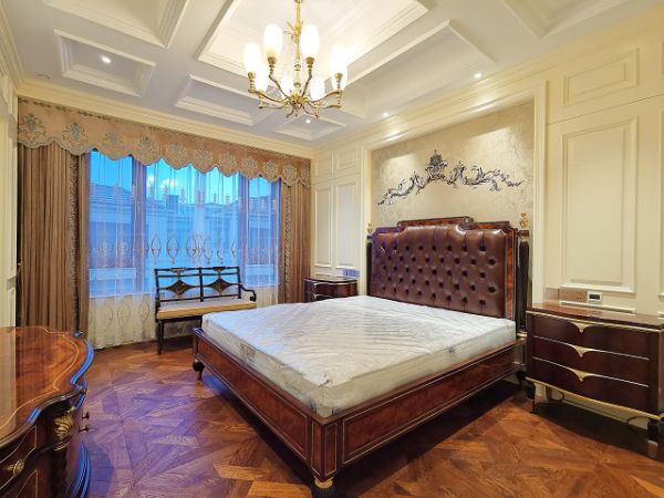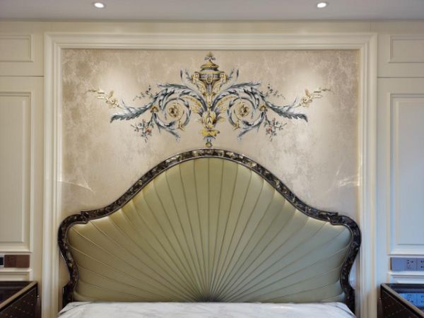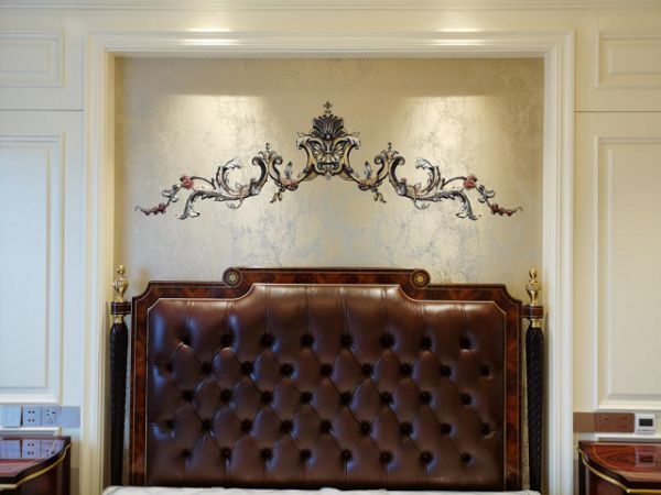 次卧主人选用的是乾庄的另一款欧式刺绣背景《波塞冬》,欧式宫廷风背景,彰显了主人非同一般的气度与品位。