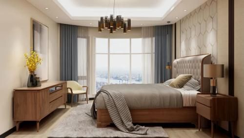 如果没有独立书房也没关系,客厅或者卧室照样能变身办公空间。床到工位的距离从来没有那么近过,省去了通勤时间,让上下班状态无缝衔接,这时构建一个临时办公区就非常关键了。