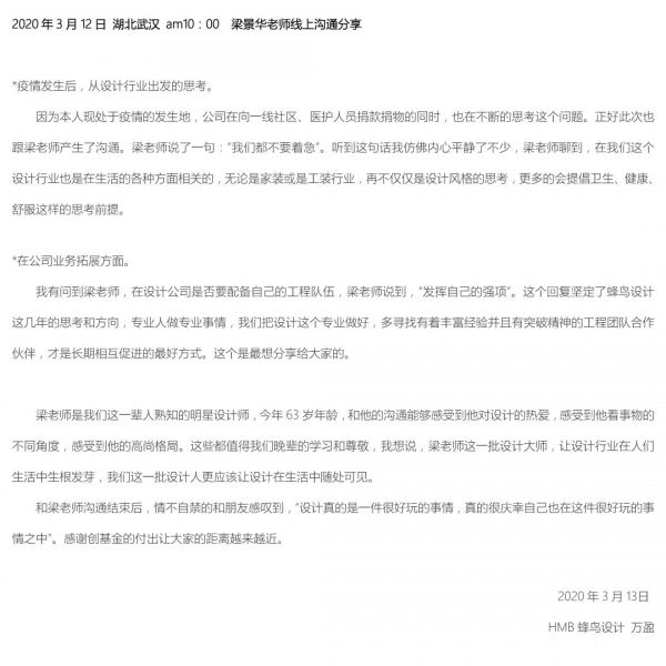 于是,有了惊蛰时分一封致湖北设计师同胞的信,打开了身困疫情暴风眼的设计师们的话匣,他们纷纷述说着面临的困境与难题。