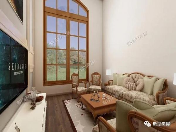 农村放置一个U型沙发,大概3.8m-5m宽,加上0.6m活动空间,那么客厅进深为5.7m。电视柜、活动空间、茶几、沙发距离加起来4.5米左右,开间为4.5m。