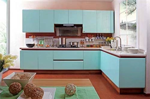2、我们在选购橱柜时,有的橱柜商家就会介绍一些烤漆门板。那么什么是烤漆,实际上,用于橱柜门板的所谓烤漆就是说明一种制作工艺,它通过喷漆以后再送到烘房进行加温干燥而成,喷漆门板它的优点就是颜色亮丽,它的材质还有一定很强的视觉冲击力,唯一缺点就是施工技术要求非常高,在制作时一不小心就会成为废品,所以它的变废率比较高,在价格上像我们一般的老百姓都接受不了,经济富有的情况下可以购买这类厨房门板。
