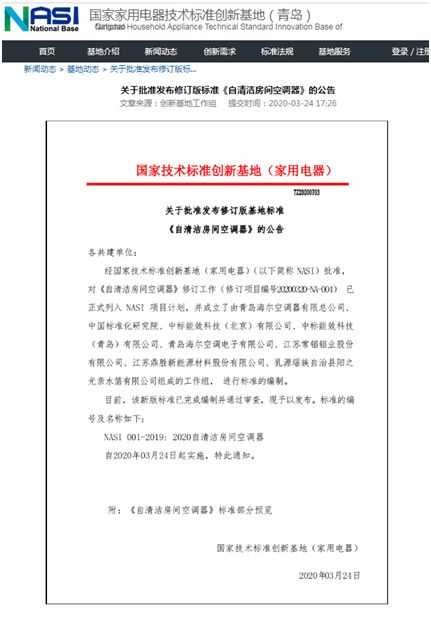 如今,非常时期让更多人关注到了“健康空气”,但是不达标的健康可以说是另一种隐患,因此更要有“健康标准”。3月24日,国家家用电器技术标准创新基地(青岛)正式批准发布了海尔空调关于《自清洁房间空调器》项目修订,主要对高温除菌做了明确规定:即自清洁空调高温除菌时,需满足56℃运行30分钟的条件。