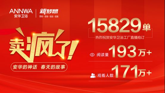 疫情无情,安华有爱。3月25日,安华“亿元补贴 抢工厂”直播大促在佛山高明安华卫浴总部圆满落幕!活动当天超额完成销售指标,工厂直播抢订达到15829单,阅读量超193万,观看人数超171万!感恩全国的广大业主朋友们选择安华,您的支持是安华前进的动力!