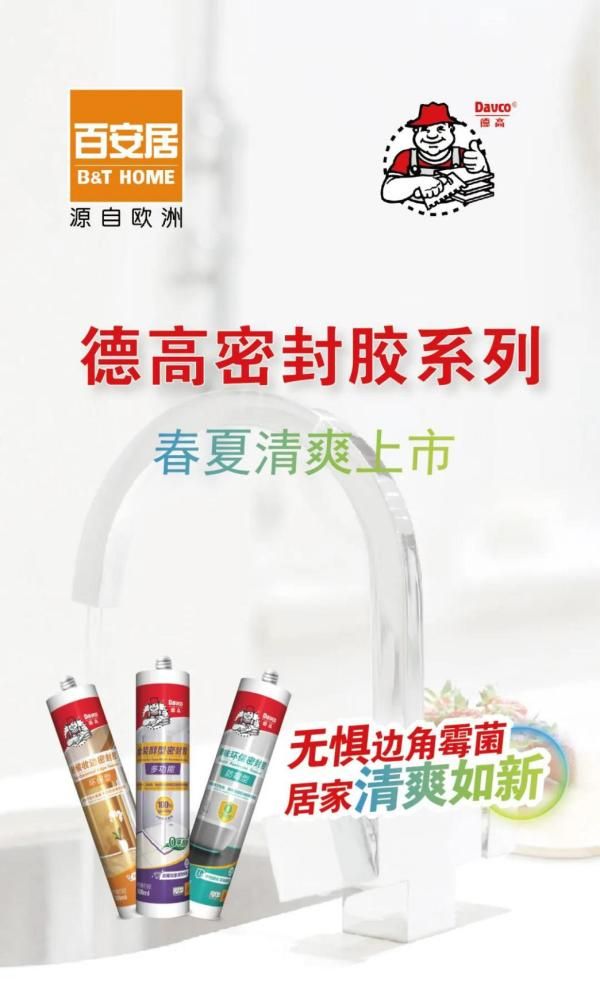 德高密封胶针对家庭湿区防霉、干区收边进行全方位焕新,胶体洁净剔透,超强抗下坠。