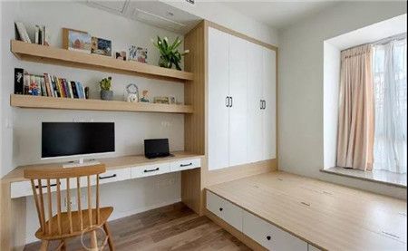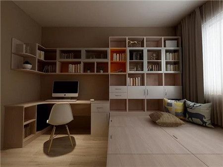 2、书房:疫情虽然已经好转,但是疫情期间的一切依然历历在目,在家办公的那段日子里,生活异常艰难困苦。一方面要完成工作,一方面要面对着孩子的呼喊,妈妈的投喂,老公的烦人。有一个可以独立的安静的办公、学习、阅读的书房是多重要!家里房间小?榻榻米来帮您!