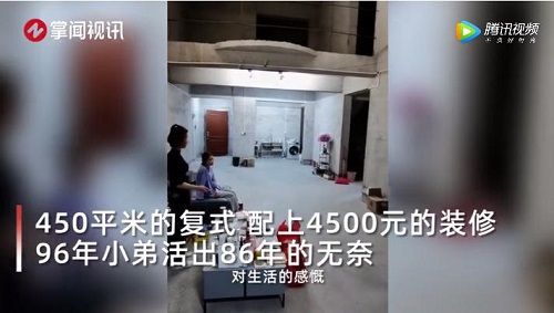 日前,一则“男子坐拥450平江景房装修只花4500”的短视频红爆网络。据报道,一位在广东打拼的90后小伙买了套450平米的江景复式房,但因为钱款没那么充裕所以先花了4500元装修了必要的地方,墙壁、地面都是毛坯。