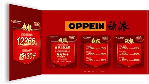 家居行业知名企业欧派家居直播2小时成交12365单、在线参与人数超过65万、总销售额超过1个亿,多个大区成交额远超预期;