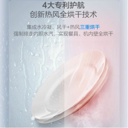 这款产品的3D热风烘干功能十分强大。它采用创新热风烘干技术,水冷凝、风干+热风三重加强烘干,强制排走内胆水汽,实现餐具、机内壁全烘干,避免碗筷潮湿、滋生细菌的问题。再也不用每次洗完碗碟后,再用干布一点点擦拭干净,费时“累心”了。对讲求细节,注重生活品质的人来说,这项功能简直无比实用。